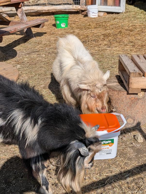 This was a big hit among the goats. They wanted to eat the whole bucket! I am so excited to have the glucosamine for them because they jump around so much and I'm looking forward to see how this helps the males long hair!
