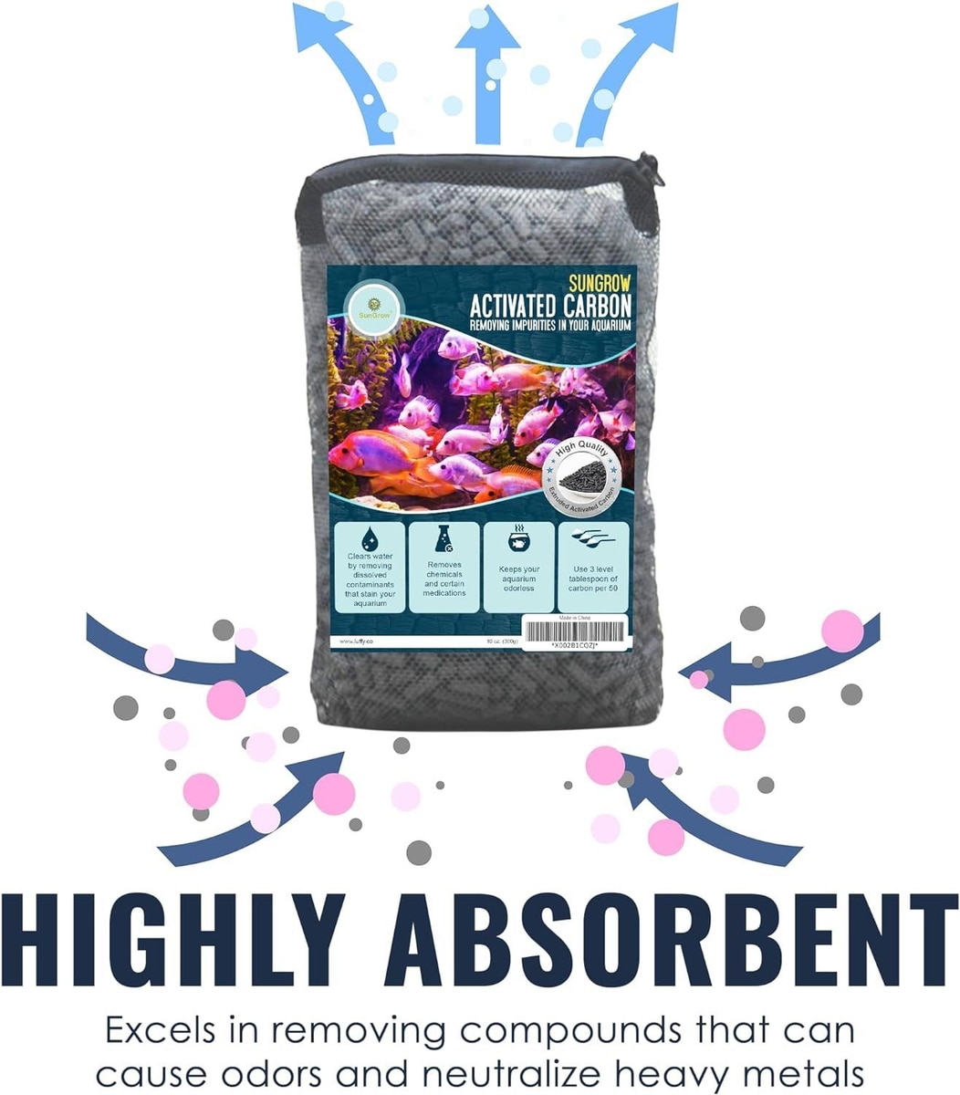 SunGrow Activated Carbon Charcoal Pellets Aquarium Filtration, Cat Litter Box & Water Fountain Deodorizer Filter Media, 10-oz