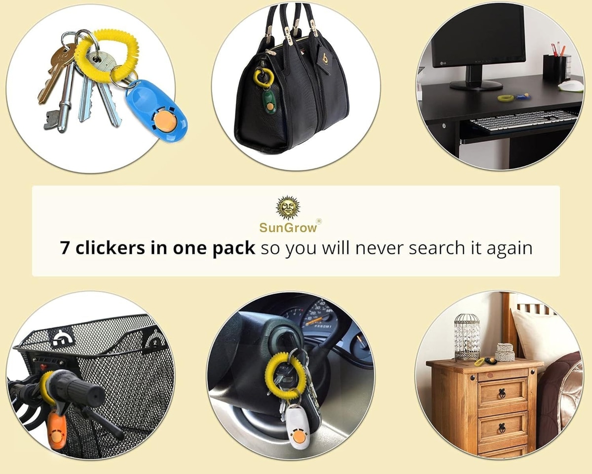 SunGrow Clickers with Wrist Band Dog & Cat Potty & Treat Training Tool, 7 count