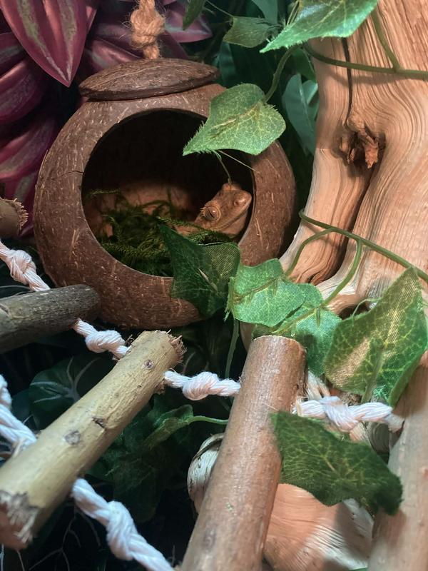 Crafted from 100% natural coconut husk, this hut is the perfect shelter for crested and leopard geckos.