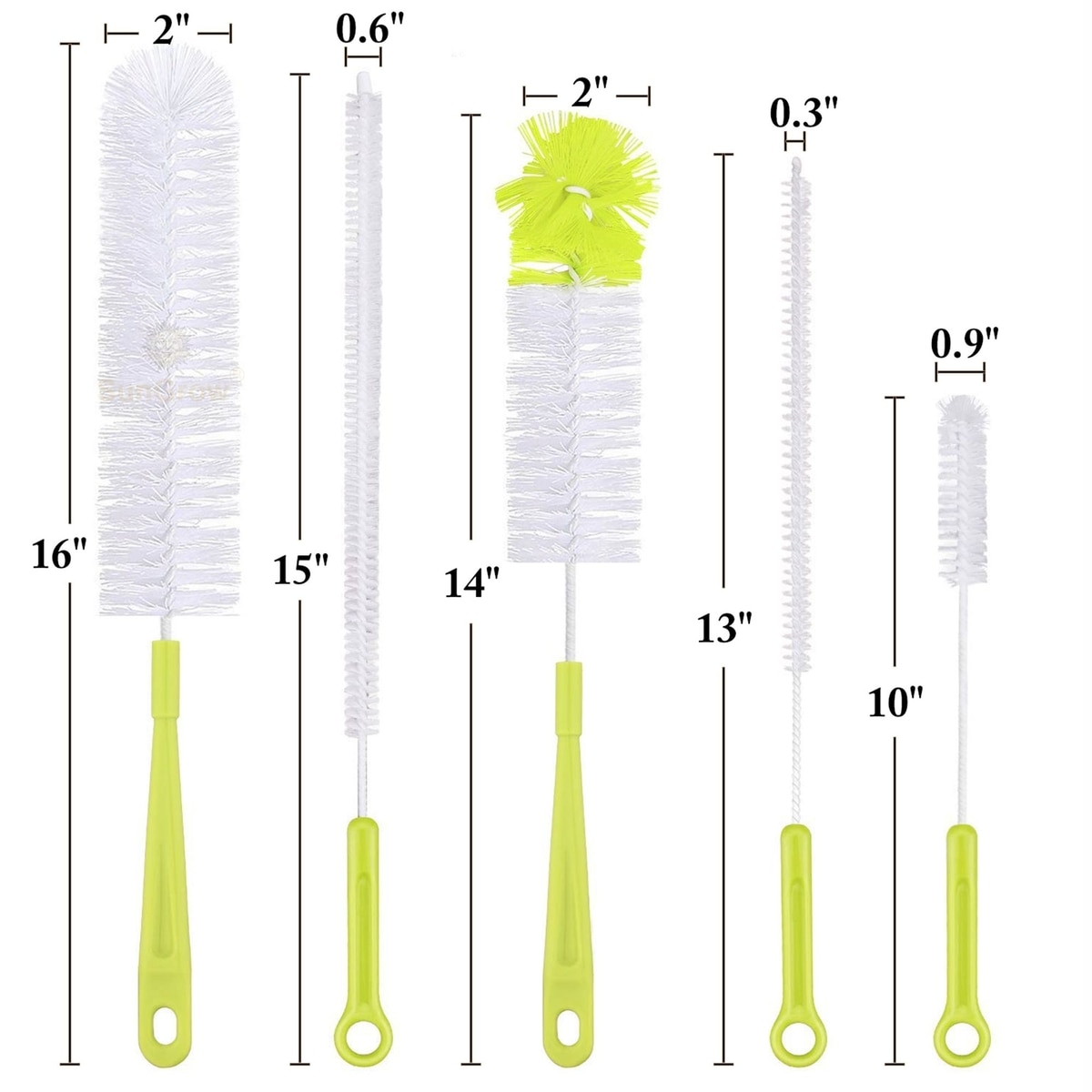 SunGrow Long Brush for Bird Fountain, Guinea Pig Bottle, Hummingbird Feeder, Pipe & Straw Cleaning, 5 counts