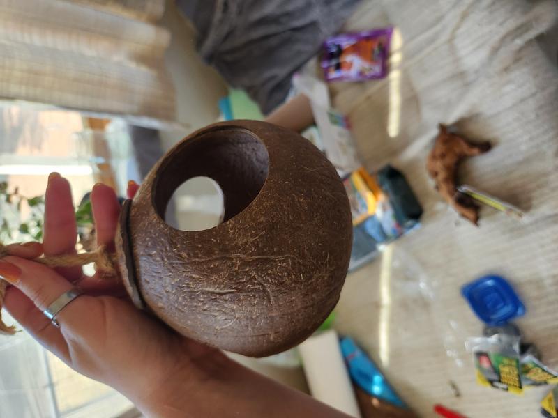SunGrow Hanging Coconut Hide Hermit Crab & Crested Gecko Reptile Climbing Decor & Tank Accessories