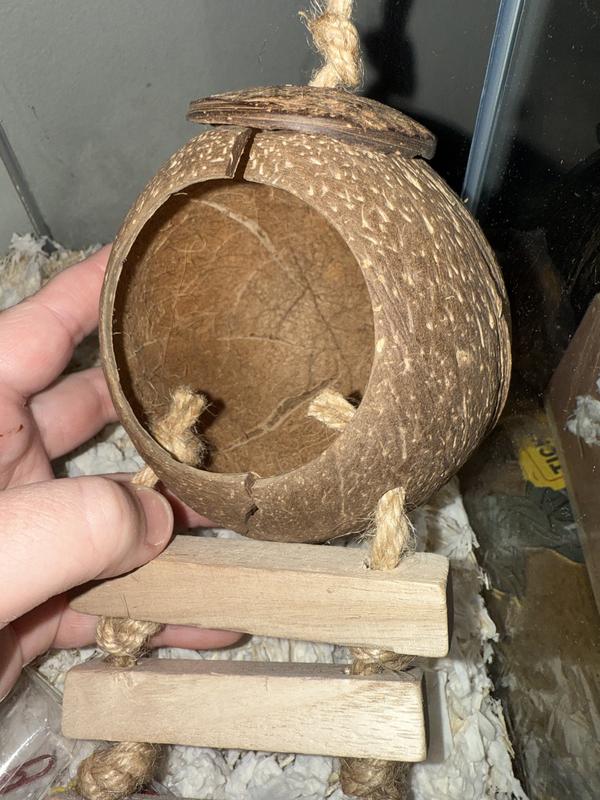 SunGrow Hermit Crab Coconut Climbing Habitat & Hideaway Cage with Ladder, Natural