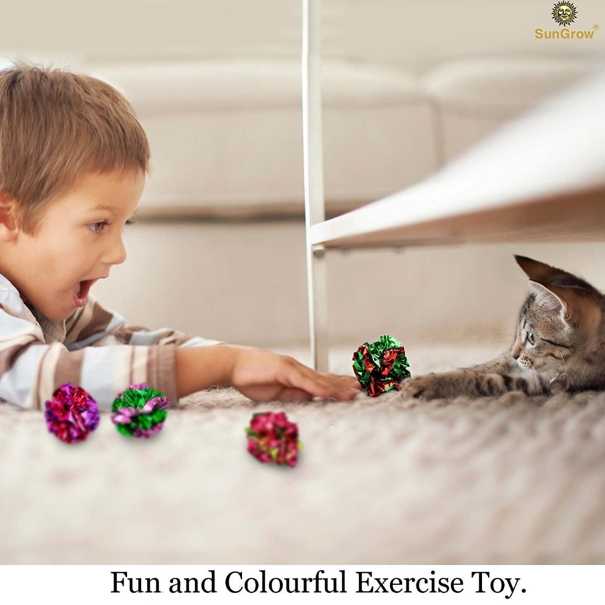 SunGrow Kitty Crinkle Balls Indoor Cat Toy, 12 count