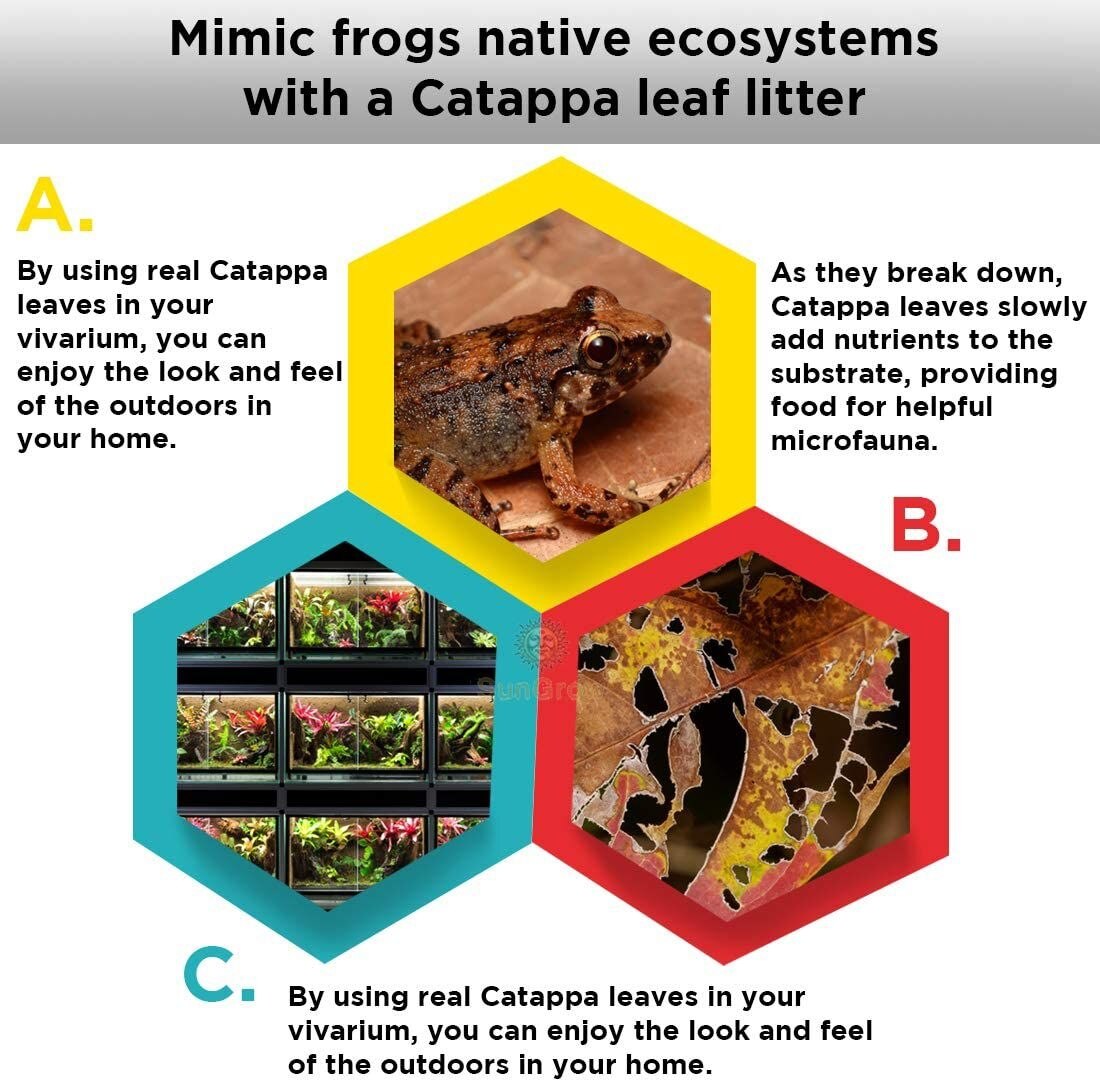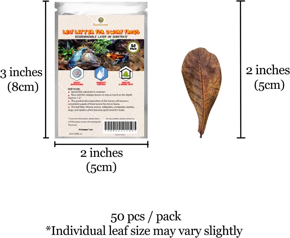 SunGrow Mini Catappa Frog & Gecko Leaf Litter, Bioactive Substrate for Reptile Vivarium, 50 count