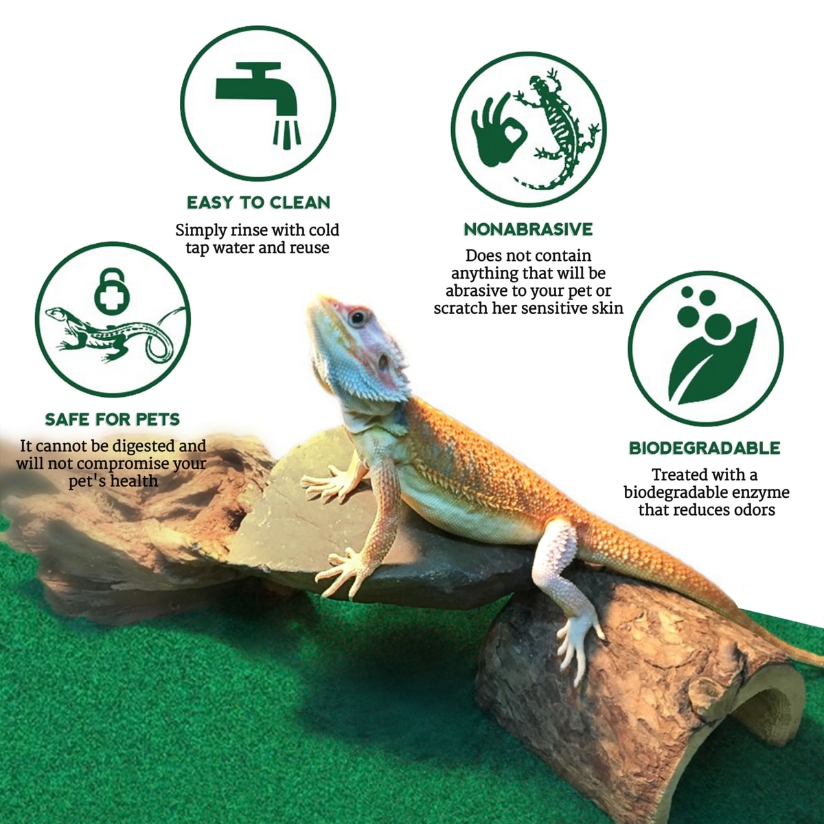 SunGrow Reptile Carpet Substrate & Floor Liner for Bearded Dragon & Leopard Gecko Tank, Green Mat Bedding