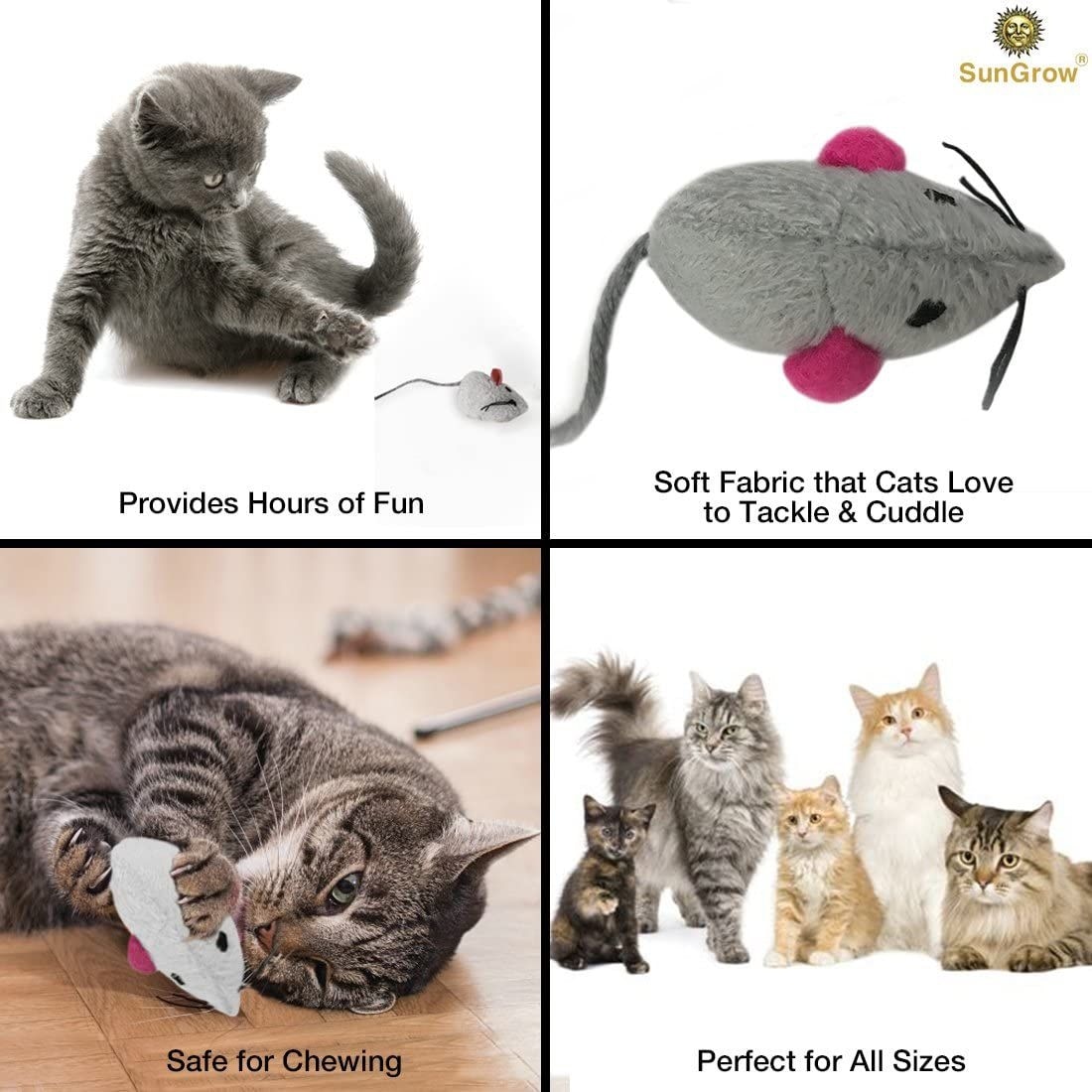 SunGrow Teething Chews Cat & Ferret Chase & Kicker Mouse Plush Toy, 5 count