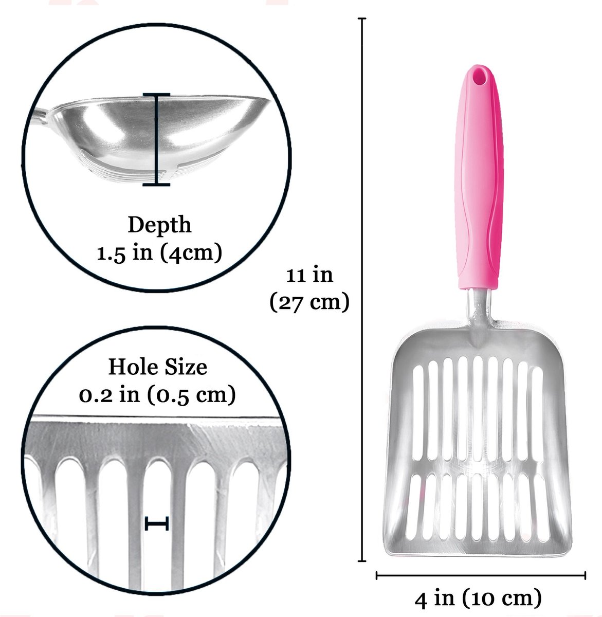 SunGrow Wide & Deep Metal Cat Litter Scooper, Pink