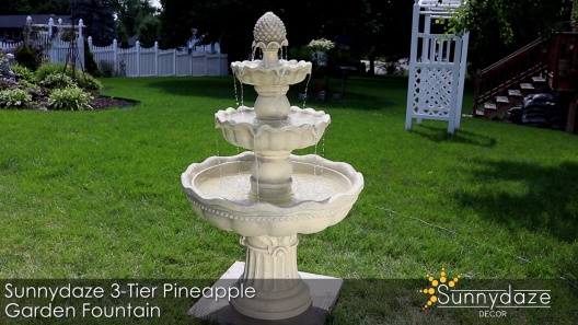 Sunnydaze Decor 3-Tier Pineapple Outdoor Water Fountain