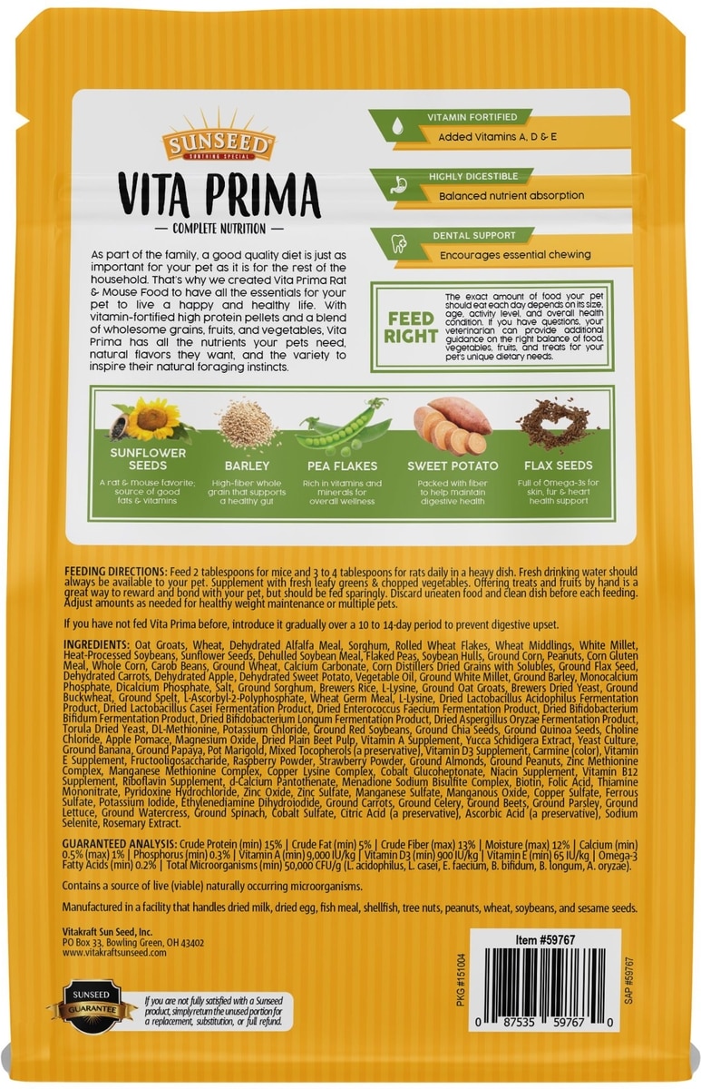 Sunseed Vita Prima Mouse & Rat Food, 2-lb bag