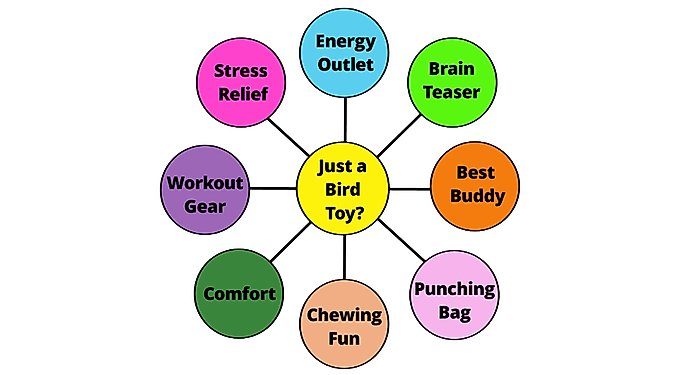 Providing enrichment in the form of purposely designed toys can prevent boredom and reduce behavioral problems in pet birds. These toys encourage healthy, natural instinctual activities, because bird toys are more than mere playthings for your bird!