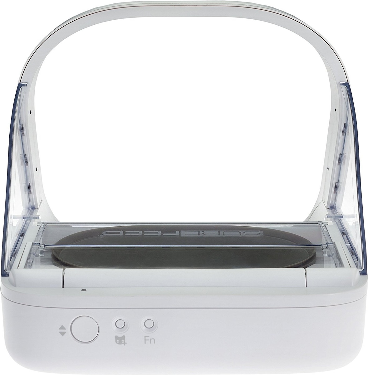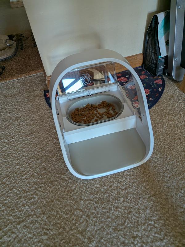 The feeder’s sealed bowl helps keep food fresher for longer. It can support wet food, dry food, or a combination diet.