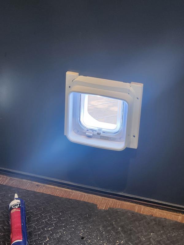 This cat door can be installed in a door, window, or wall.