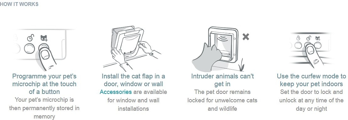 Program your cat's microchip at the touch of a button. You cat's microchip is then permanently stored in memory. The cat flap remains locked for cats that are not programmed in the system and wildlife.
