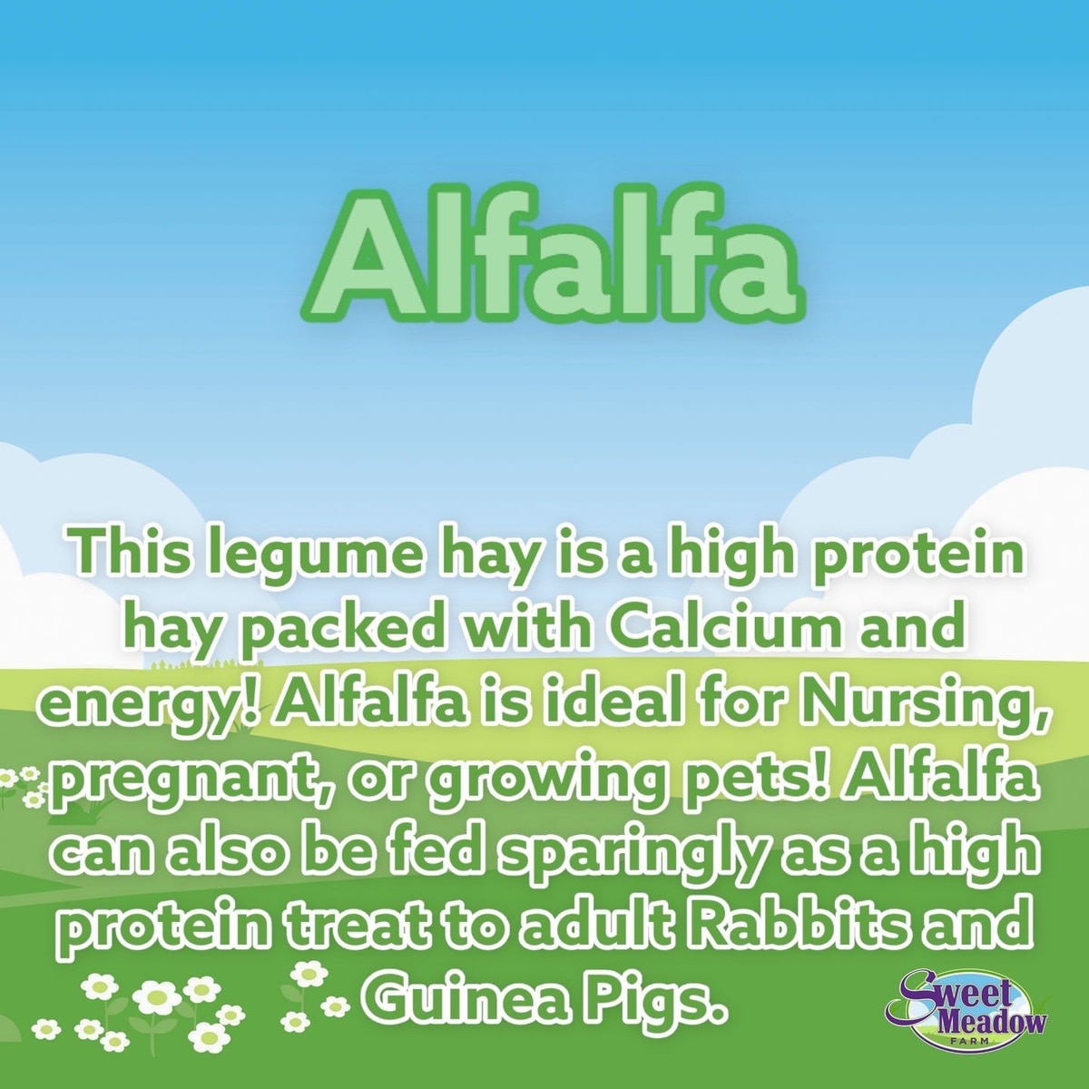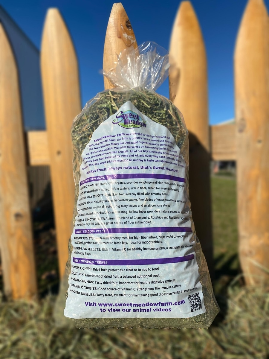 - Sweet Meadow Farm Sweet Meadow Hay Small Pet Food, 20-oz bag$6.29 Chewy Price$5.98 Autoship PricePromo, New Customers Only: Spend $49+, Get $20 eGift Card