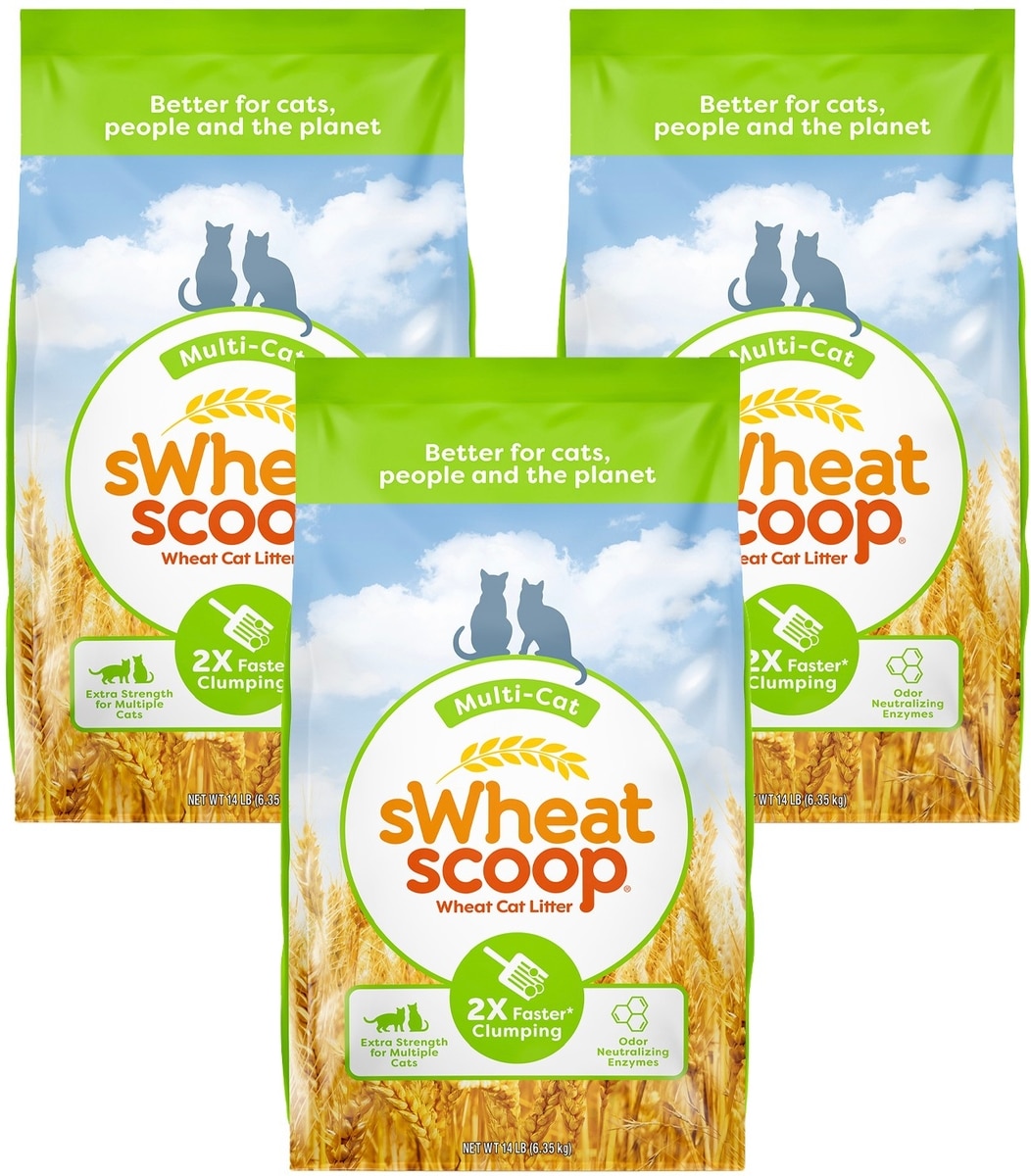 sWheat Scoop Multi-Cat Natural Clumping Wheat Cat Litter, 14-lb bag, bundle of 3