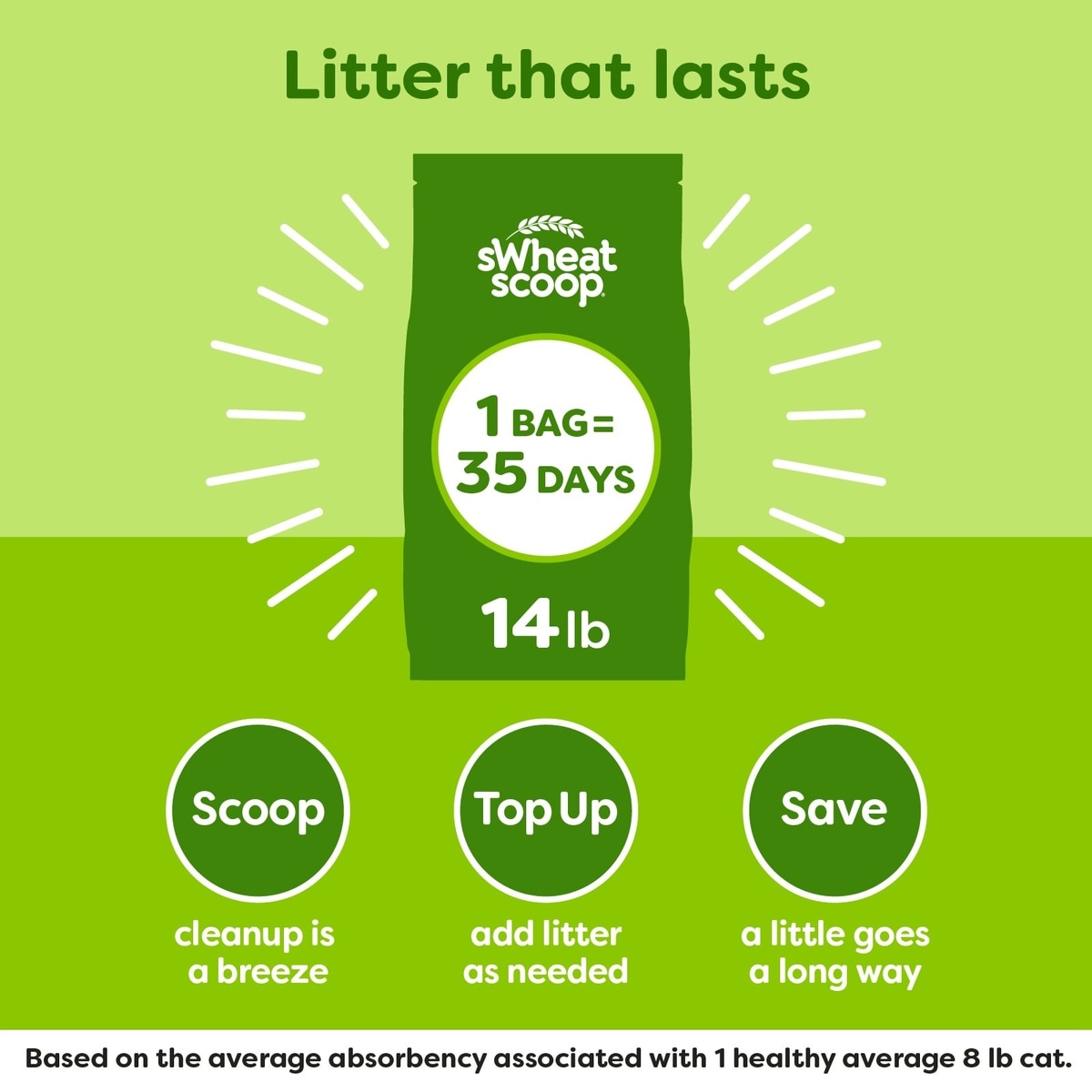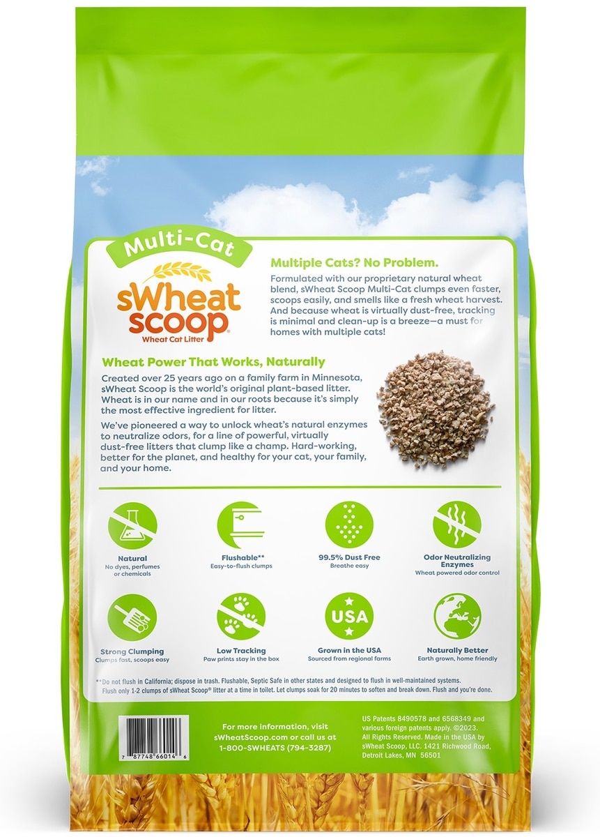 Welcome to cat litter made better. Formulated with a proprietary natural wheat blend, sWheat Scoop clumps fast, scoops easily, and smells like a fresh wheat harvest.