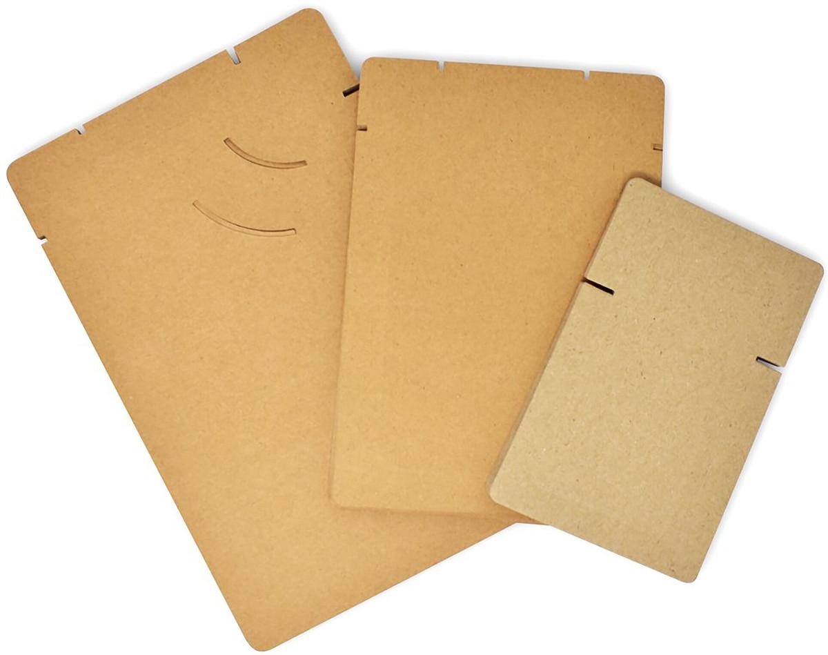 The Small measures approximately 6.75 x 4.25 x 0.25 inches. The Medium measures approximately 8.75 x 5.75 x 0.25 inches. The Large measures approximately 10.8 x 6.9 x 0.35 inches.