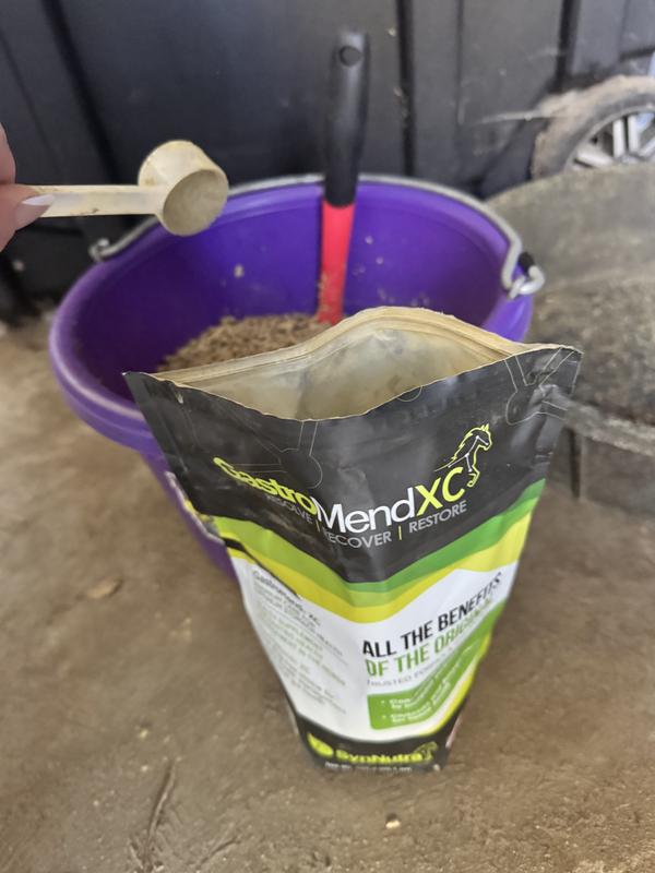 SynNutra GastroMendXC has been a great product for my horse so far! My horse has a very sensitive digestive system and she’s always needing extra support to help the presentation of diarrhea or worse. This product has proven to be great for her overall gut health. She’s not a picky eater so I was able to scoop it into her daily grain and she eats it with no qualms. The product is made in the USA which makes it feel trusted and full of healthy ingredients. It’s backed by veterinarians so I trust feeding it to my horse knowing it’s only helping her. The product is a fine powder. It seems to work great and I really like all the ingredients. It doesn’t have fillers or other junk that isn’t good for the horse.