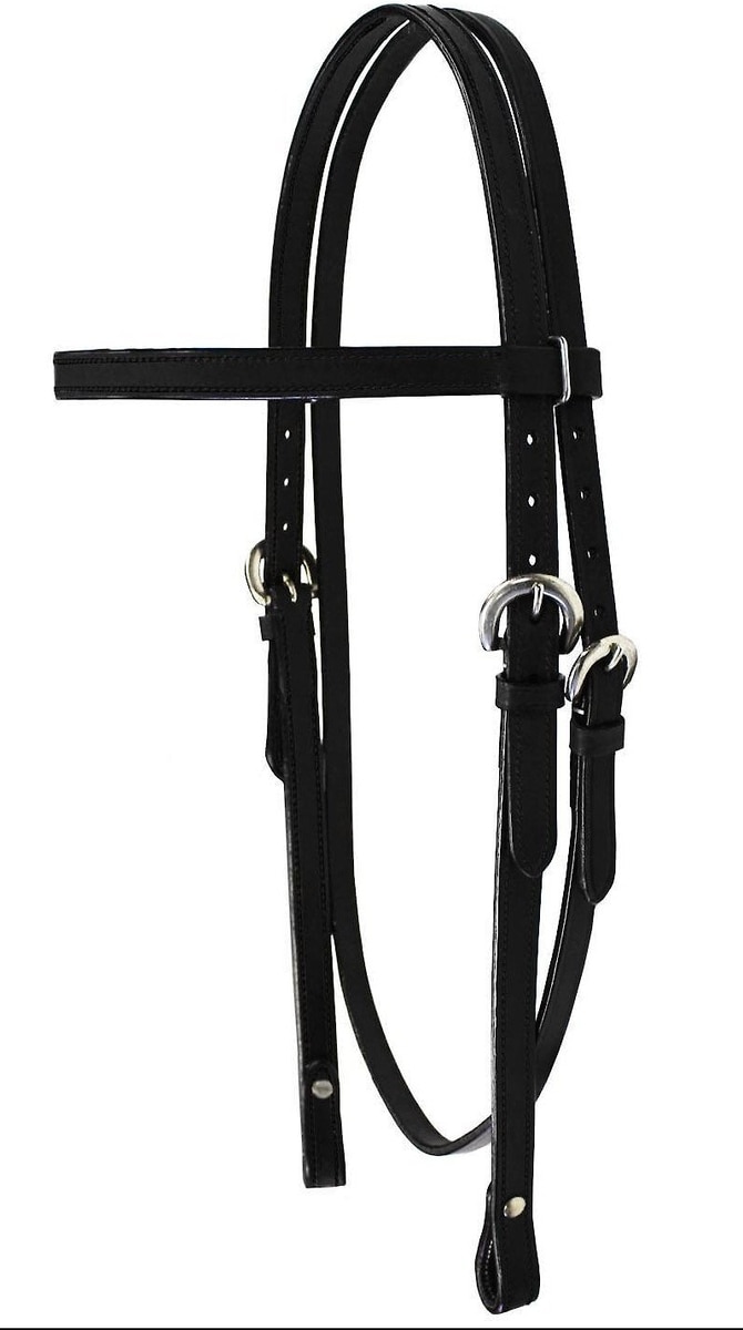 Tahoe Tack Double Stitched Leather Western Horse Browband Headstall, Black, Mini