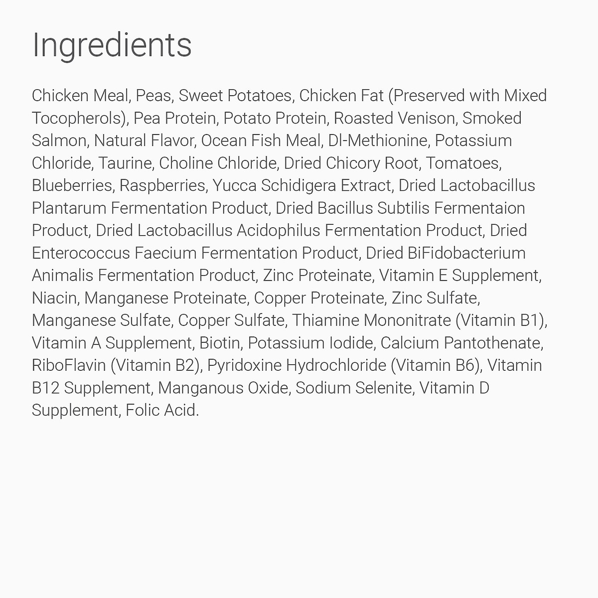 Taste of the Wild is made with premium fish and meats like smoke-flavored salmon, trout, ocean fish, roasted venison and chicken. Every formula is grain-free and provides lasting energy with complex carbs from sweet potatoes and legumes. These highly digestible proteins and fiber-rich carbohydrates will keep your pet feeling full and energized throughout the day.