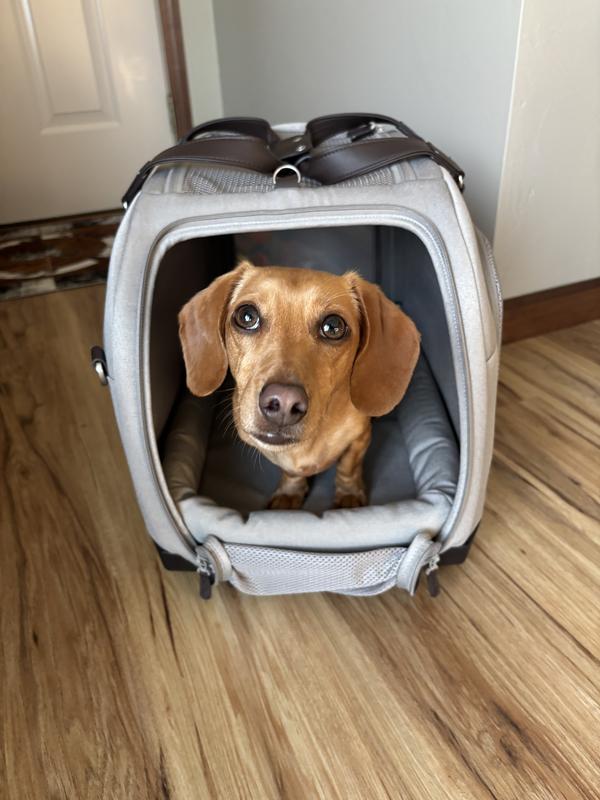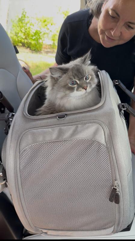 This is by far the best pet carrier I’ve ever used. It is extremely comfortable, very sturdy, and clearly made with high-quality materials. It even comes with useful travel attachments, which makes it perfect for trips. I have a 16-pound cat, and anyone with a larger cat knows how difficult it is to find a carrier that is spacious, sturdy, and not flimsy. This carrier exceeded my expectations in every way. My cat fits comfortably with plenty of room, and I feel confident that he is safe and secure inside. One of my favorite features is that it includes multiple bedding options, making it suitable for both smaller cats and larger ones like mine. My cat will be very comfortable, especially during longer trips. I plan to use this carrier when traveling to my mother’s house for the holidays, and I know it will make the trip much easier for both of us. The attention to detail is excellent. I especially love the leather handles, which are comfortable to hold and make carrying the carrier much easier. Overall, this carrier feels very secure, well-designed, and versatile. I could see dogs under 20 pounds fitting comfortably as well. If you have a larger cat and struggle to find a durable, well-made carrier, I highly recommend this one.