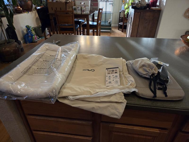 My mini dachshund is enjoying this as a car seat. It came with two different super soft beds. A lighter material for warm weather and a second bed of Sherpa material for cooler weather. All four sides and the top are vented with flaps that open to allow more light in. The kennel is solid hard material wrapped in a wonderful cushioned fabric that helps deaden sound. It came with an easy on easy off carrying strap. A bag to put the entire kennel in to protect when not in use. Easy to use pad to protect from side airbags.