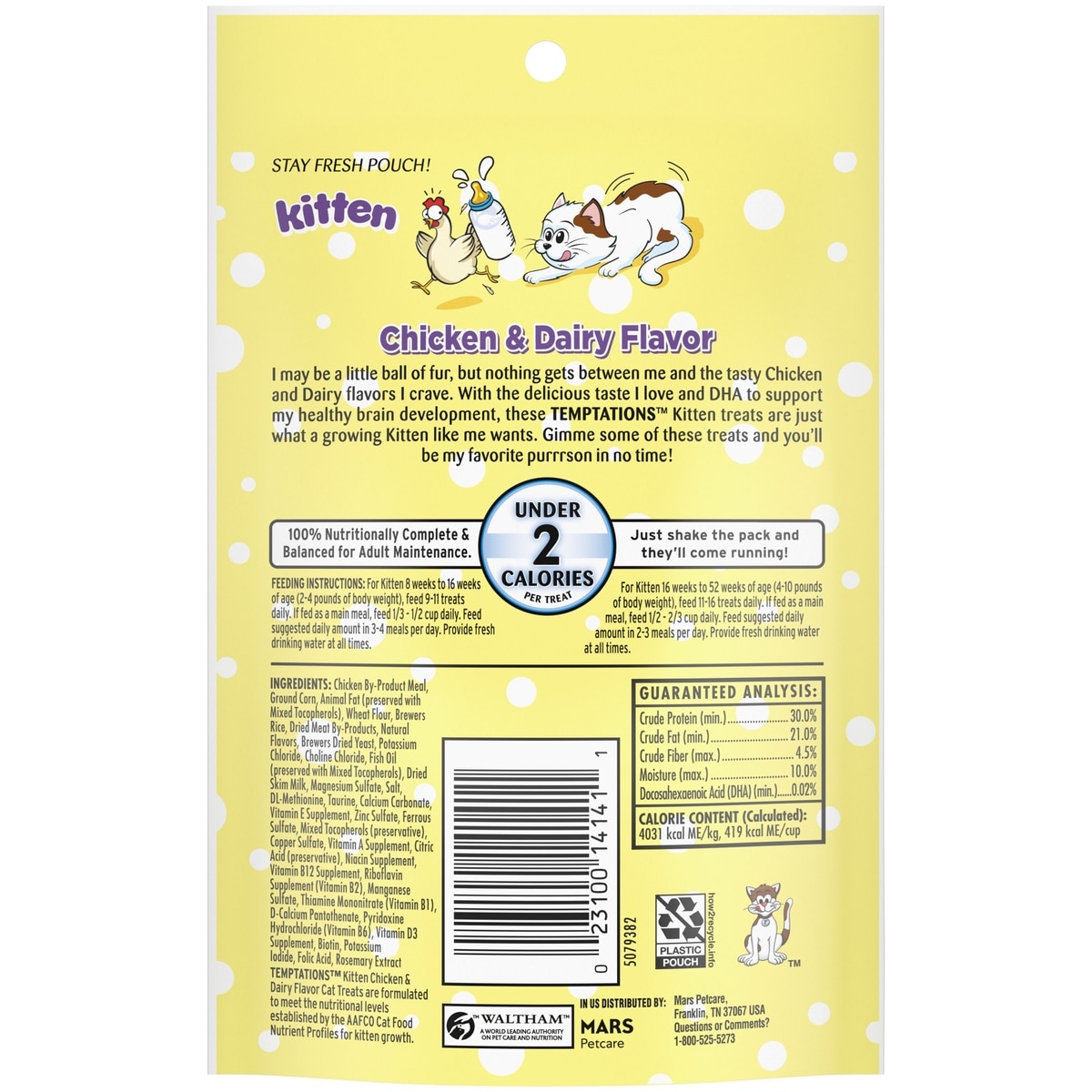 - Temptations Tasty Chicken & Dairy Flavor Dry Kitten Food, 3.15-lb bag$5.98 Chewy Price$6.99 List Price$5.68 Autoship PricePromo, New Customers Only: Spend $49+, Get $20 eGift Card
