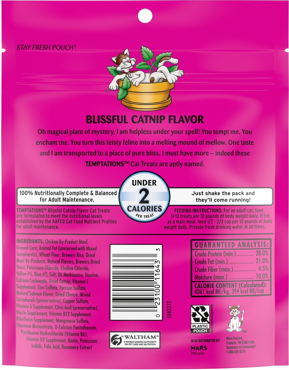 - Temptations MixUps Catnip Fever Flavor Soft & Crunchy Cat Treats, 6.3-oz bag$3.98 Chewy Price$4.29 List Price$3.78 Autoship PricePromo, New Customers Only: Spend $49+, Get $20 eGift Card