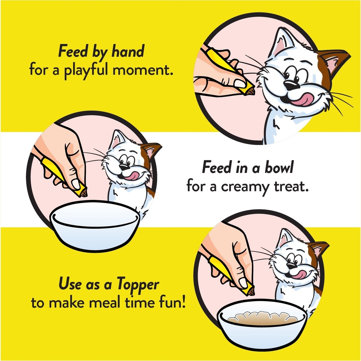 Win over even the pickiest felines with Temptations Creamy Puree Wet Cat Treats—you can feed this lickable wet cat treat by hand for an interactive bonding experience. It’s also great on its own in a dish as an irresistible treat, or you can use it as a delicious meal topper. The creamy puree doesn’t require chewing, either, making it an easy snack for senior cats to eat.