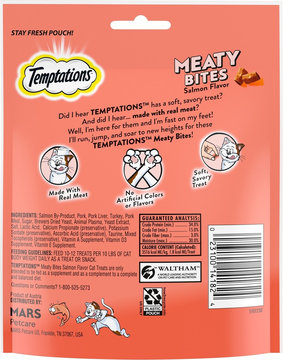 - Temptations Meaty MixUps Salmon & Tuna Bites Soft & Chewy Cat Treats, 1.5-oz pouch$2.58 Chewy Price$2.79 List Price$2.45 Autoship PricePromo, New Customers Only: Spend $49+, Get $20 eGift Card