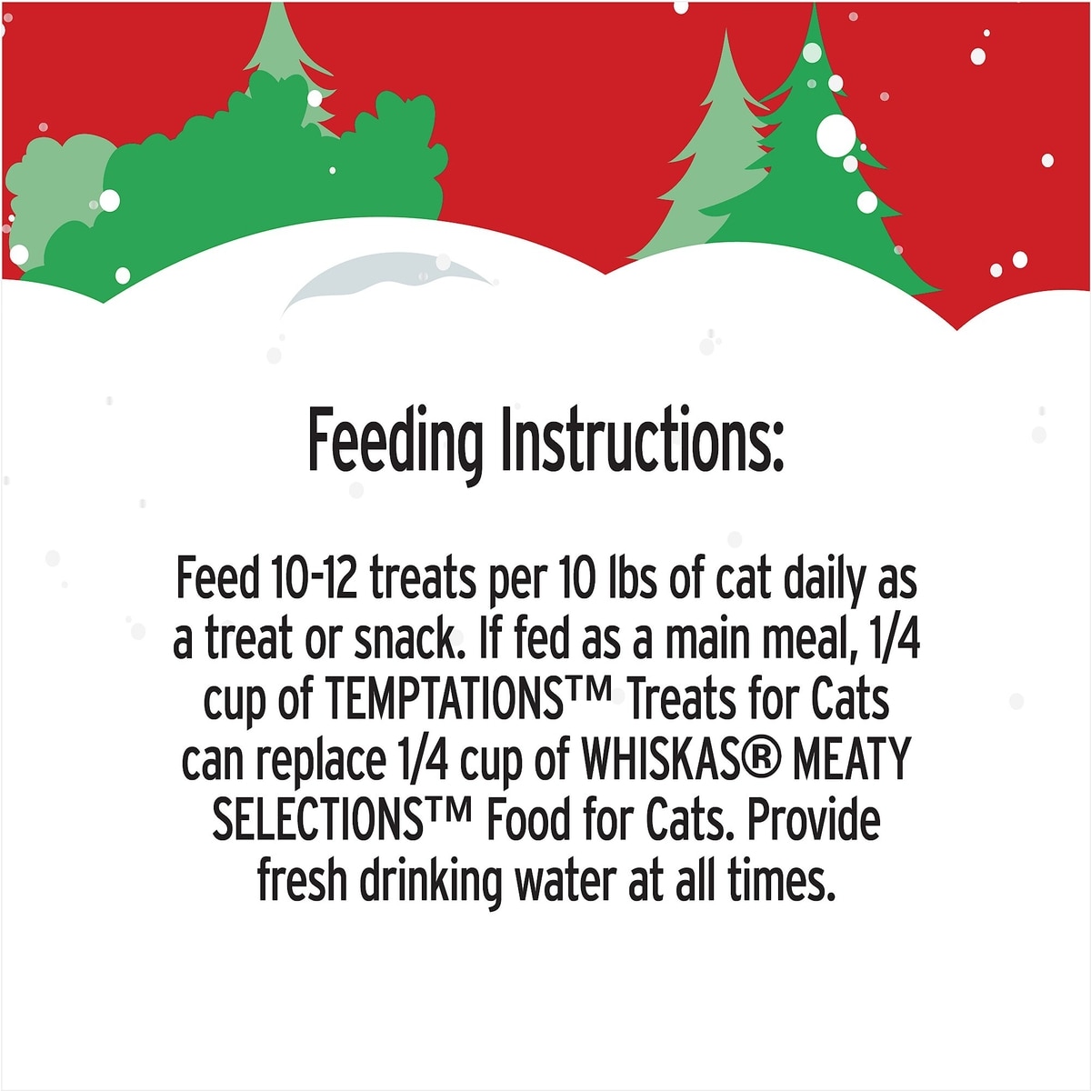 - Fill the snowman-shaped toy with the sample cat treat bag or your pal’s favorite Temptations cat snacks (sold separately).