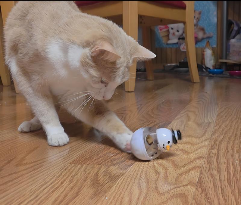 My cat was gifted a penguin version of this toy several years ago and he LOVES it! The poor penguin has seen better days after countless shakedowns. I thought I buy a cute holiday version so the penguin could rest a bit. Sadly, the design of the snowman is not as good. The little tines that allow you to adjust the flow of treats only covers one of three holes. The treats just dump out. My cat figured out the trick on the first go round, laid it down, rolled it and scarfed up all the treats at once. Then barfed. Typical.