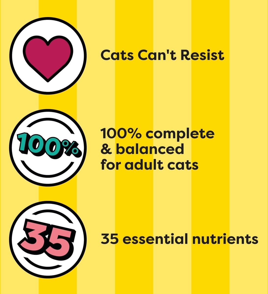 100% Complete and Balanced Made with 35 vitamins, minerals, and amino acids, these recipes also include omega-6 fatty acids, calcium, and vitamin D to support healthy skin, coat, teeth, and bones. Your cat will love the crunchy-on-the-outside, soft-on-the-inside pockets, too!