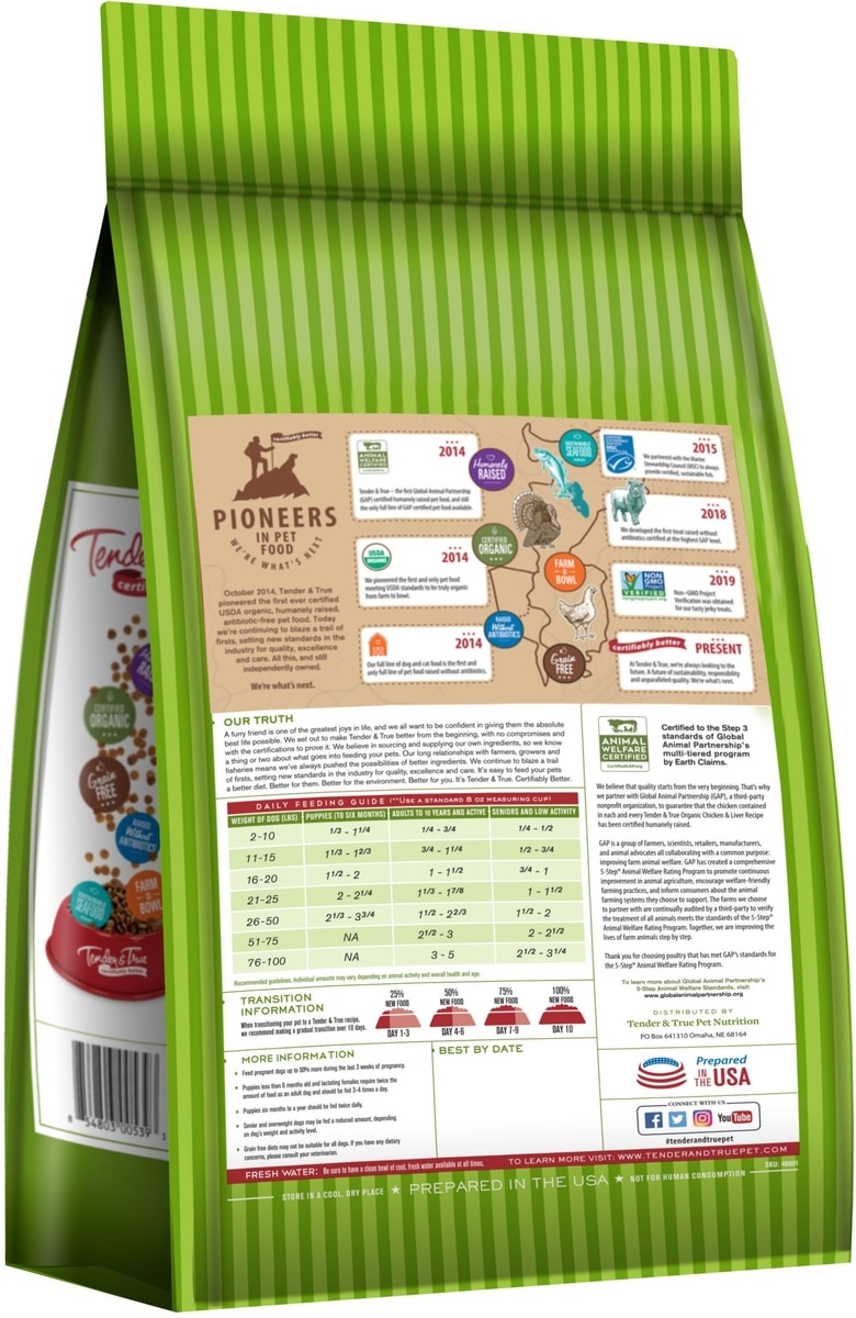 - Tender & True Organic Grain-Free Turkey & Liver Recipe Dry Dog Food, 4-lb bag$26.99 Chewy Price$25.64 Autoship PricePromo, New Customers Only: Spend $49+, Get $20 eGift Card
