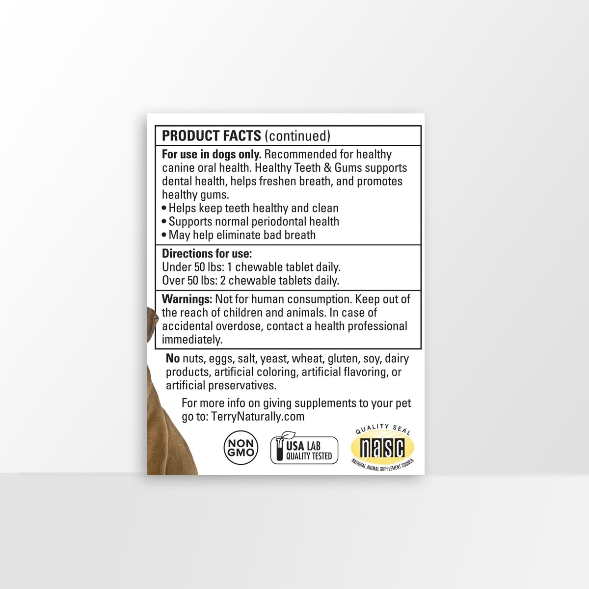 Terry Naturally Animal Health Healthy Teeth & Gums Liver Flavored Chewable Tablet Dental Supplement for Dogs, 60 count