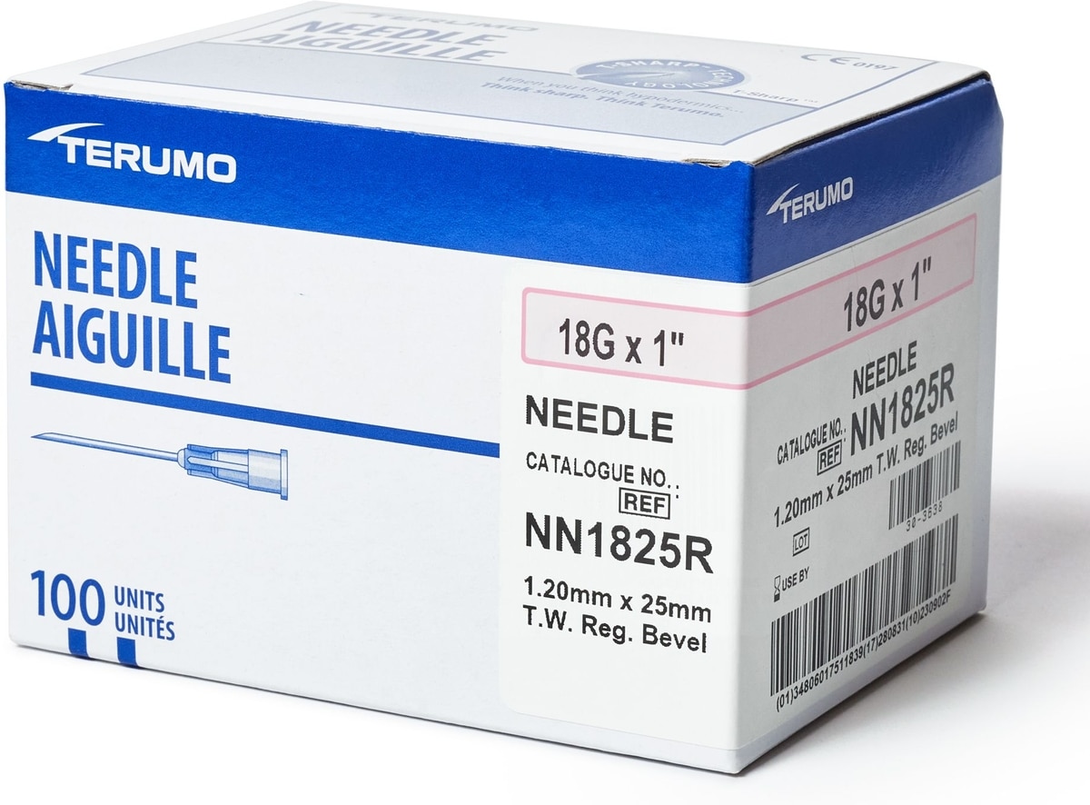 Terumo Hypodermic Thin Wall 18 Gauge Needles, 1 Inch, 100 count