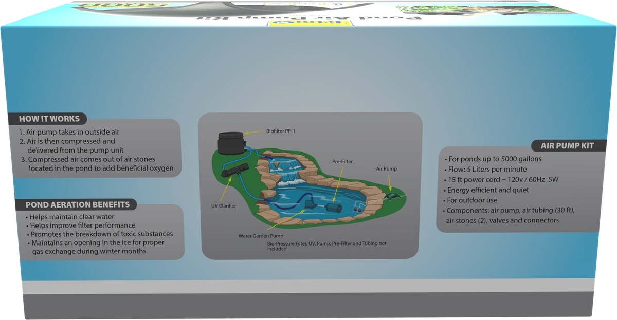 • Works in tanks or ponds of up to 5,000 gallons and is the ideal winter survival solution.