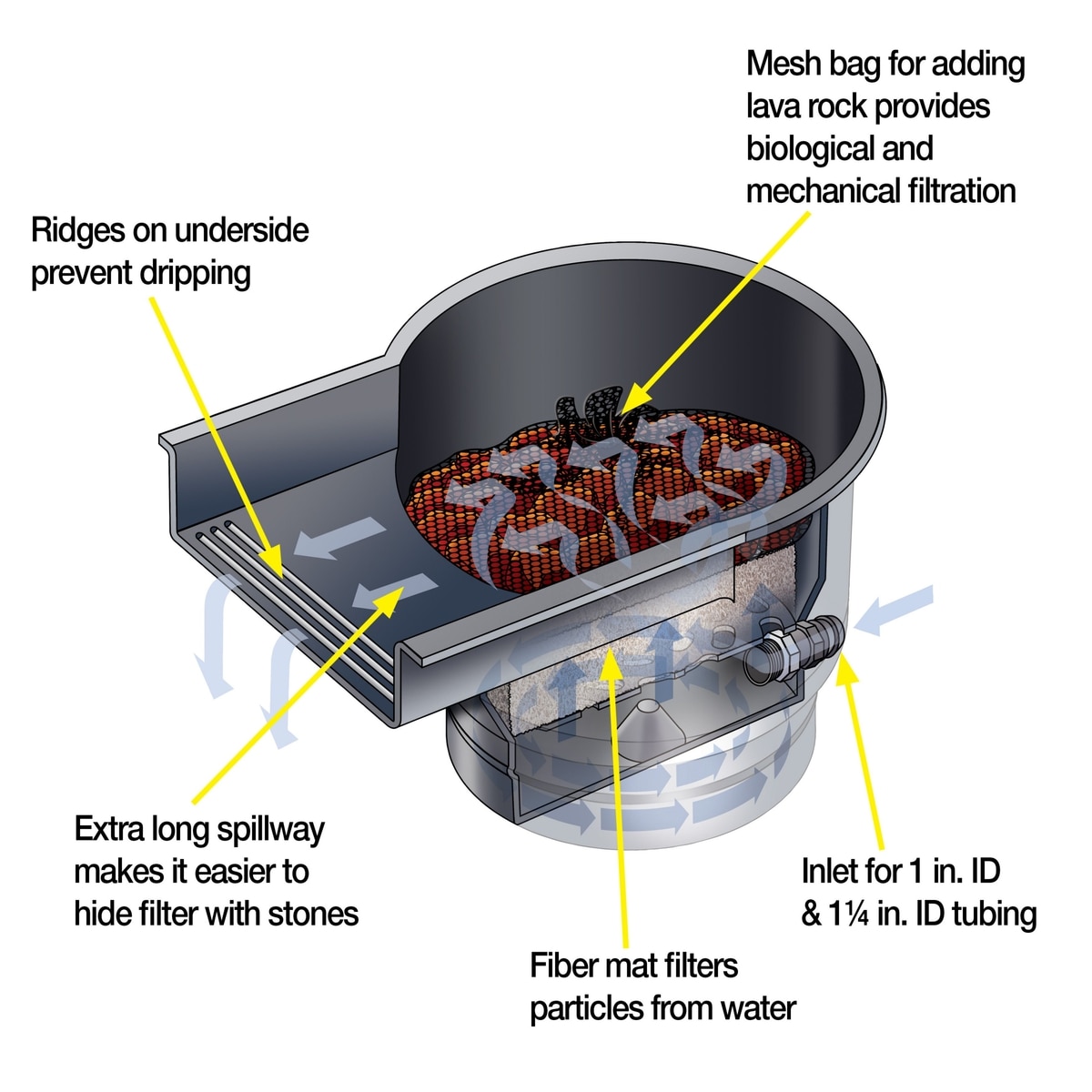 This filter is large enough to suit ponds and water gardens up to 1,000 gallons.