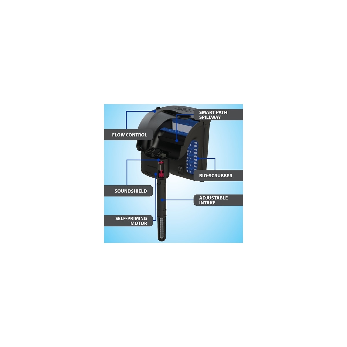 • Sound shield with Stay Clean technology produces ultra-quiet filtration.
