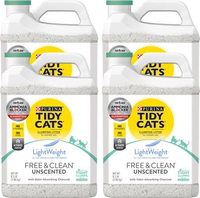 Tidy Cats Lightweight Free & Clean Unscented Clumping Clay Cat Litter, 8.5-lb jug, bundle of 4