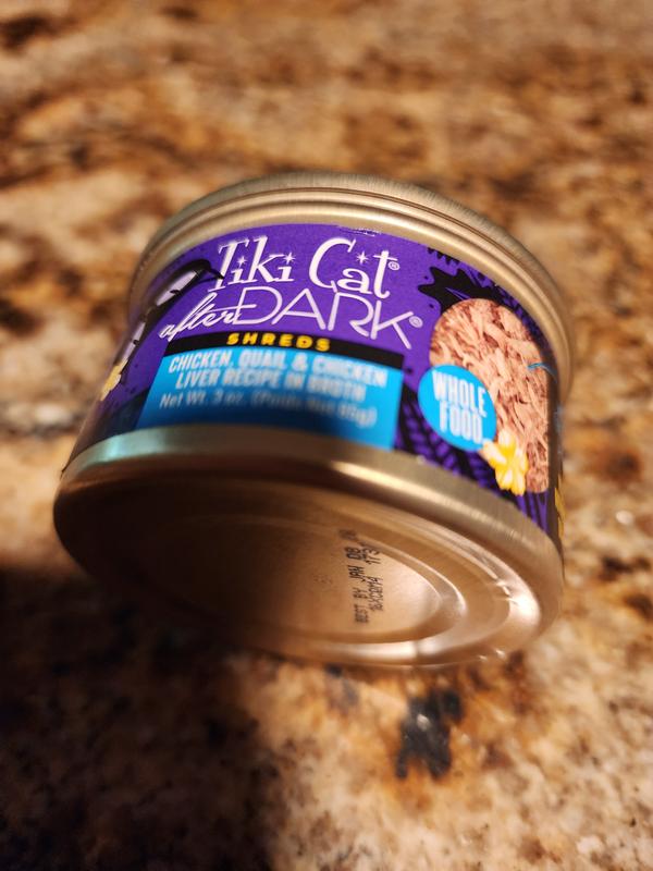 Tiki Cat After Dark Chicken, Chicken Liver & Quail Grain-Free Shredded Wet Cat Food, 3-oz can, case of 12
