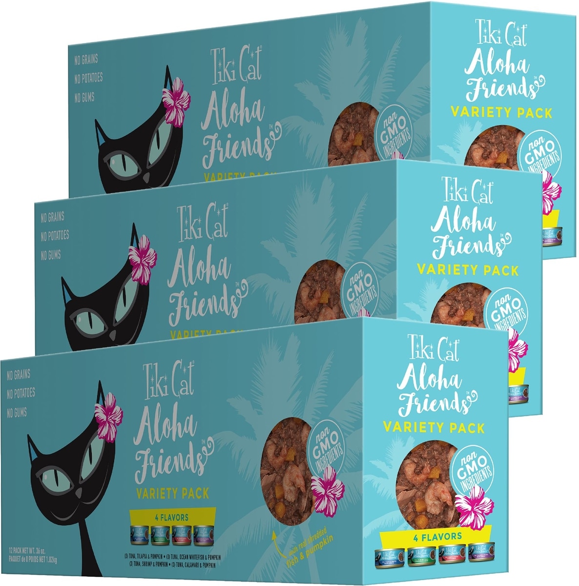 - Tiki Cat Luau Variety Pack Grain-Free Canned Cat Food, 2.8-oz, case of 12$24.97 Chewy Price$26.28 List Price$23.72 Autoship PricePromo, New Customers Only: Spend $49+, Get $20 eGift Card
