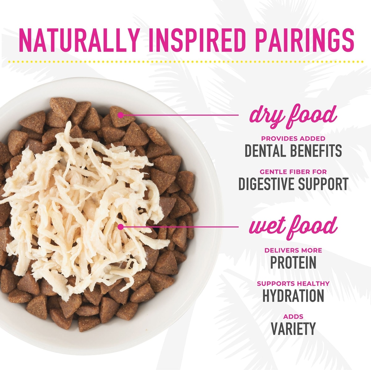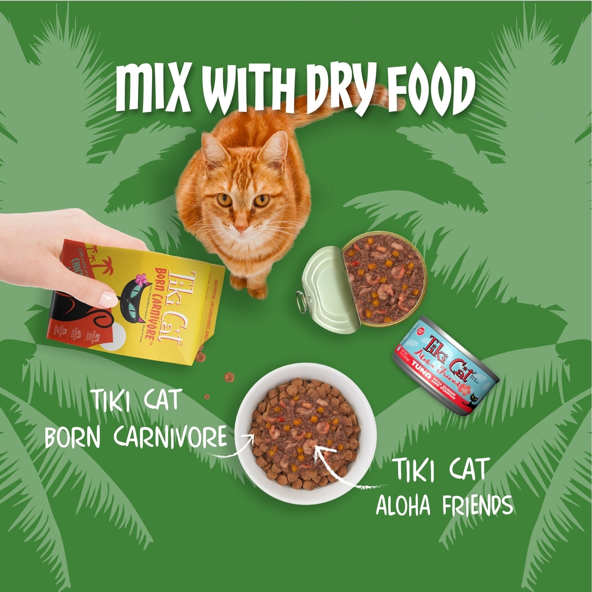 Tiki Cat foods mimic the natural prey diets of cats, using the finest ingredients to give them exactly what their bodies need. Tiki Cat offers hundreds of different meat-forward flavors in various textures and formats. By serving a variety of Tiki foods, you can ensure your pets benefit from different ingredients and nutrients at every meal. Serve each one alone or mix, top, rotate, and serve them together for maximum nutritional benefits and mealtime fun!