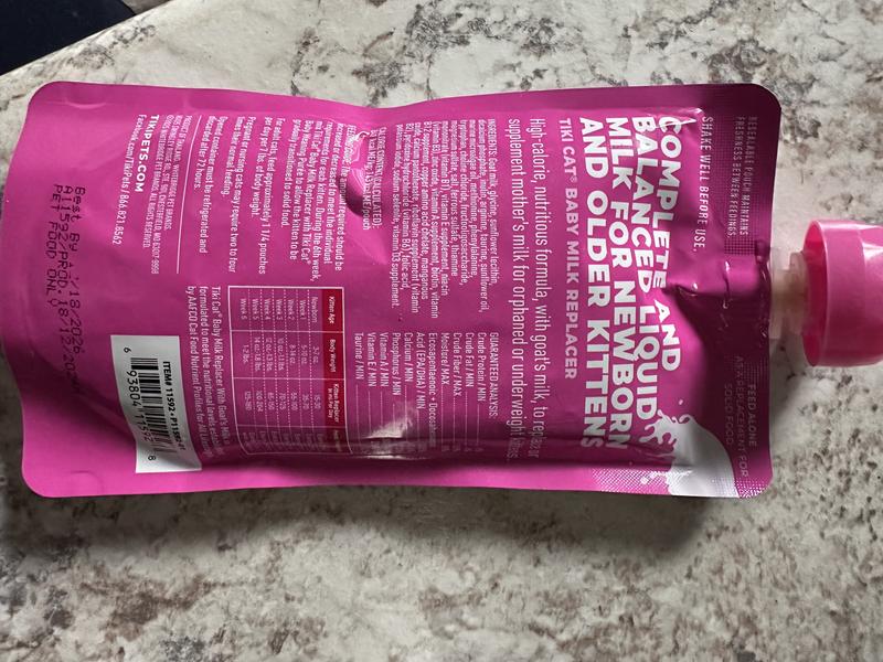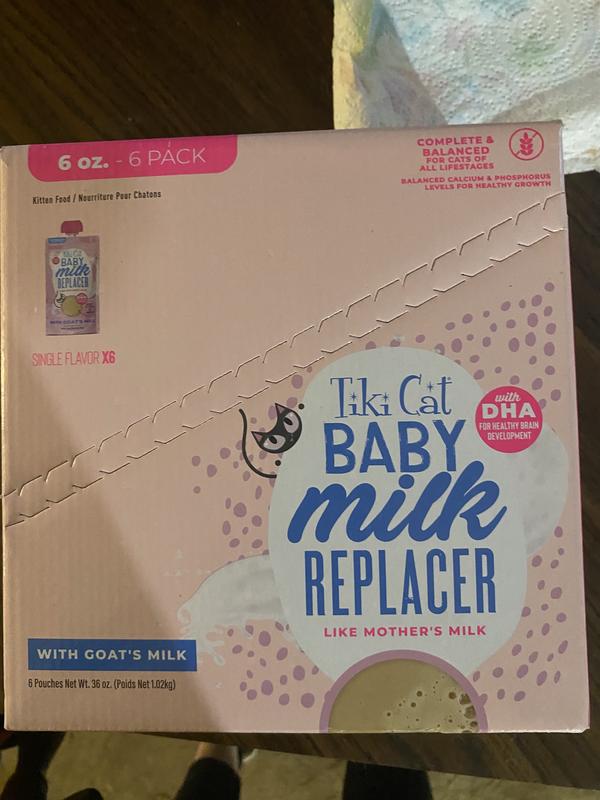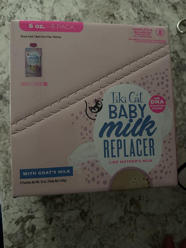 Tiki Cat Baby Milk Replacer Goat Milk Wet Kitten Food, 6-oz pouch, case of 6