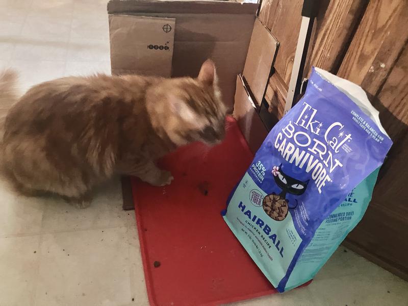 I've always known Tiki Cat to be a high quality brand of cat food. I tried their Born Carnivore hairball formula of dry food for our three longhaired cats. My oldest cat, Ollie, has frequent issues with hairballs and my other two boys occasionally have these issues. Our vet found no heath problems and recommended we feed a hairball formula food to reduce hairballs. We've tried other brands with some success - we've seen a reduction in Ollie's hairballs, but he still would have them once or twice a week. After the first week eating Born Carnivore we haven't seen any hairballs yet. Best of all, our boys love the food! This recipe is grain free, high in protein, and includes natural vegetable fiber to help reduce hairballs. We feed it with wet food so our boys get the hydration they need. I think we've found a new favorite dry food!