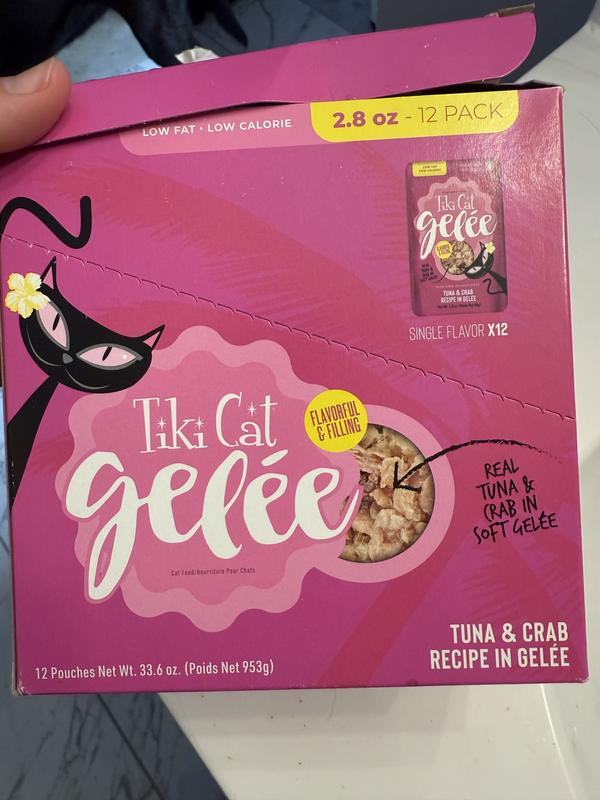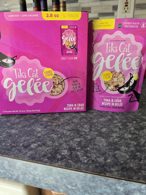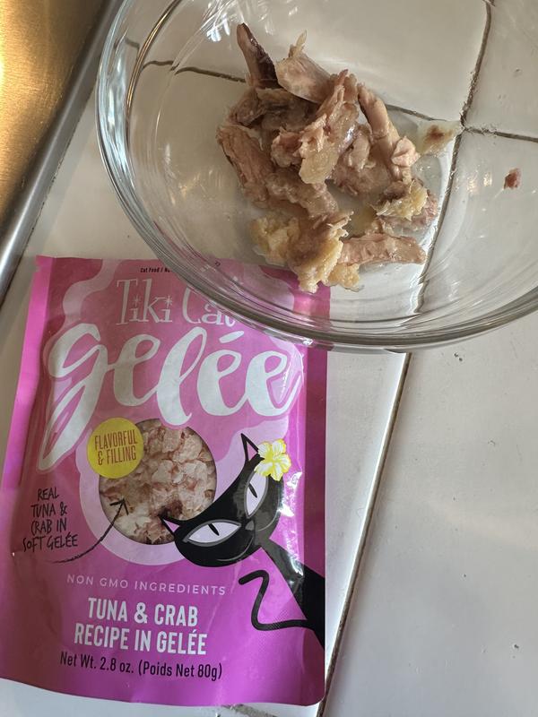 My cats love the delicious Tiki Cat Gelée tuna & crab recipe. I have two 14 year old cats that could use the extra hydration. The pouch is deep so I suggest a long spoon to scoop it out, I also add warm water to the pouch in order to benefit from the entire package plus, my cats love to lick it up. The first 3 ingredients are tuna, tuna broth and crab offering a protein rich meal. Tiki Cat Gelée Wet Cat Food offers a nutritious, high-protein option for feline diets, especially for those needing grain-free meals. However, the unique texture may not suit all cats preferences.