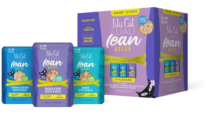Tiki Cat Luau Lean Gelee helps cats maintain a healthy body condition while keeping them full and satisfied. The soft gelee texture is smooth and hydrating, and the real pieces of shredded chicken, salmon, or duck are delicious and filling. Tiki Cat Luau Lean Gelee recipes are complete and balanced meals for your cat, and each one is packed with flavor to provide your obligate carnivore with everything necessary to support a healthy weight.