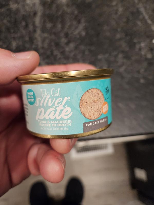 Tiki Cat Silver Tuna & Mackerel Recipe Grain-Free Pate in Broth Wet Cat Food, 2.4-oz can, case of 12