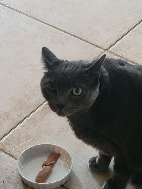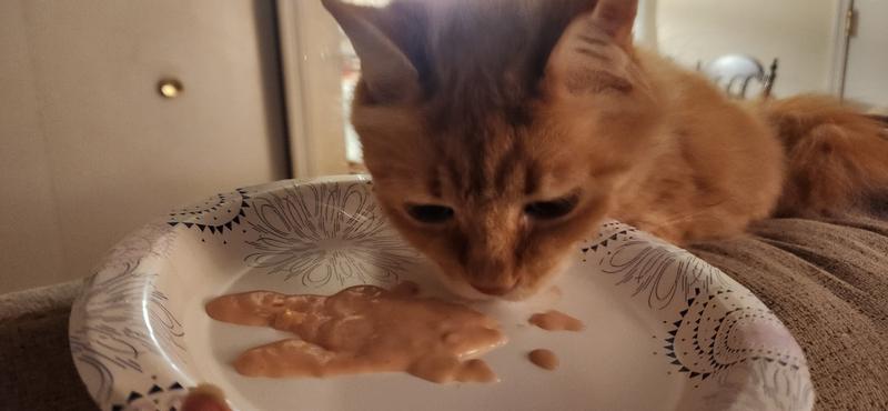 I offered this to my cat, Ella, by squeezing it out of the tube and into a small bowl. Ella is very picky about her food/treats, and she only likes dry crunchies for treats. Ella took her time checking out the tuna in the bowl, sniffing and bating it as she likes to play with her food, and soon hunks of tuna were all over the floor. I left her alone for a bit, and when I came back, she had eaten all of the tuna. Ella liked the aroma and flavor of the tuna, as well as the texture. She did not hesitate when I offered the tuna again several days later. I finally found a wet treat that Ella likes!